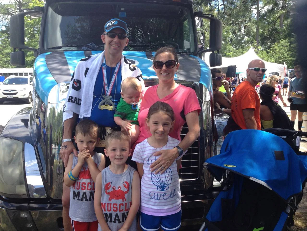 My husband trains for triathlons (training with Caroline is my triathlon) & we love turning these events into active family getaways. The kids love doing the fun runs. We really love enjoying an active lifestyle together as a family.